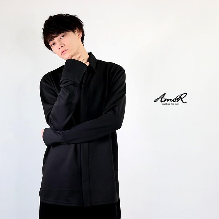 長袖ロングシャツ シャツ メンズ アウター ロング丈 黒 長袖 ブラック モード系 Amor 艶黒 Amormen Tops1003 Santasan 通販 Yahoo ショッピング
